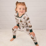 Sleep soundly in these comfy bamboo viscose pajamas. We are using a luxurious 250 GSM fabric. Our 2-piece sets fit more TTS than the convertible footies, with a little extra length for some room-to-grow!