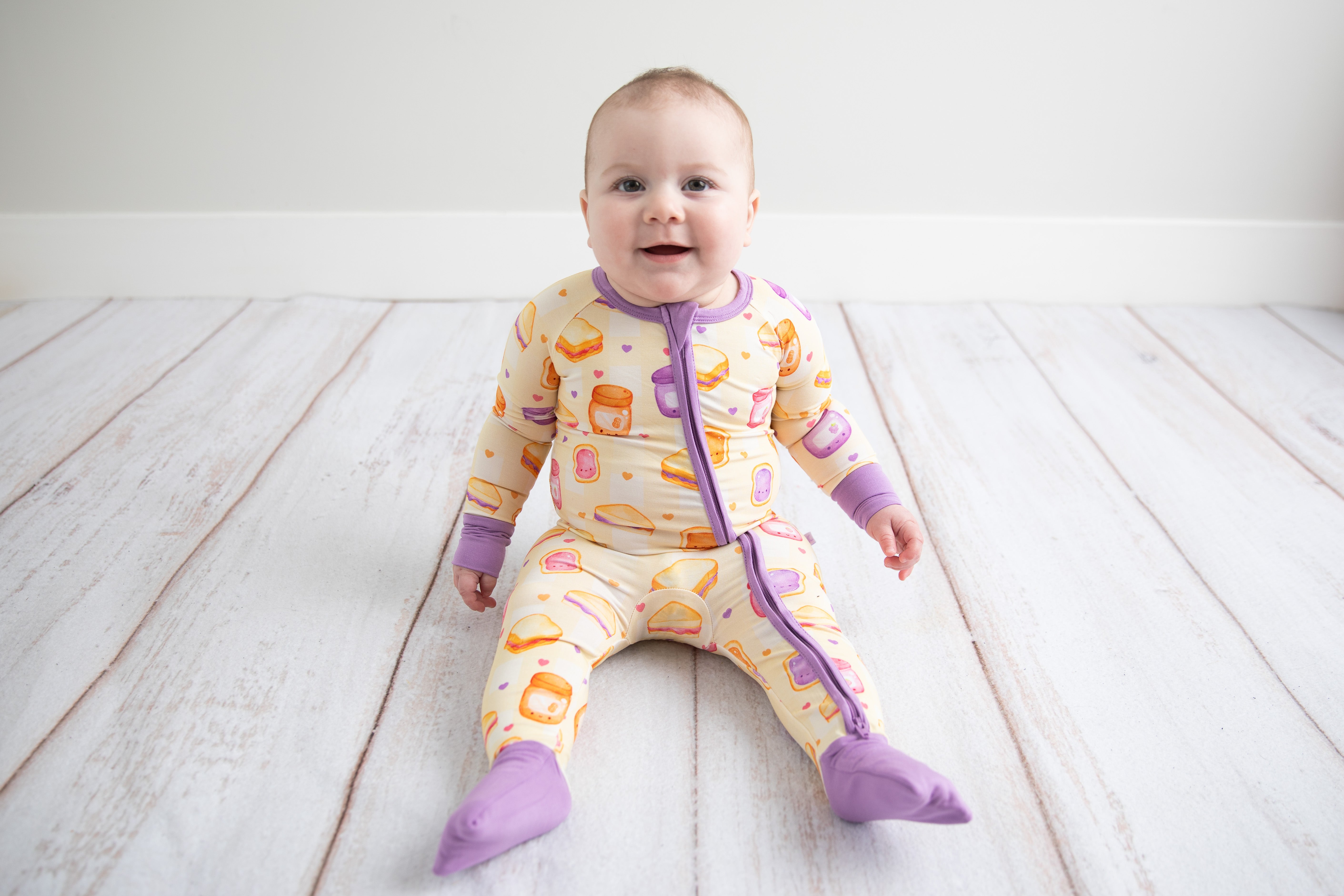 This print features a fun twist on a beloved childhood snack! These Peanut Butter & Jam pajamas are sure to turn heads.