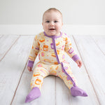 Our convertible footies are generously sized with plenty of room-to-grow. Please visit our Facebook VIP page (Slumberly VIP) for assistance with sizing if you'd like some help! Fold-over hands are available on sizes 0-3m and 3-6m only (fold-over feet on all sizes).