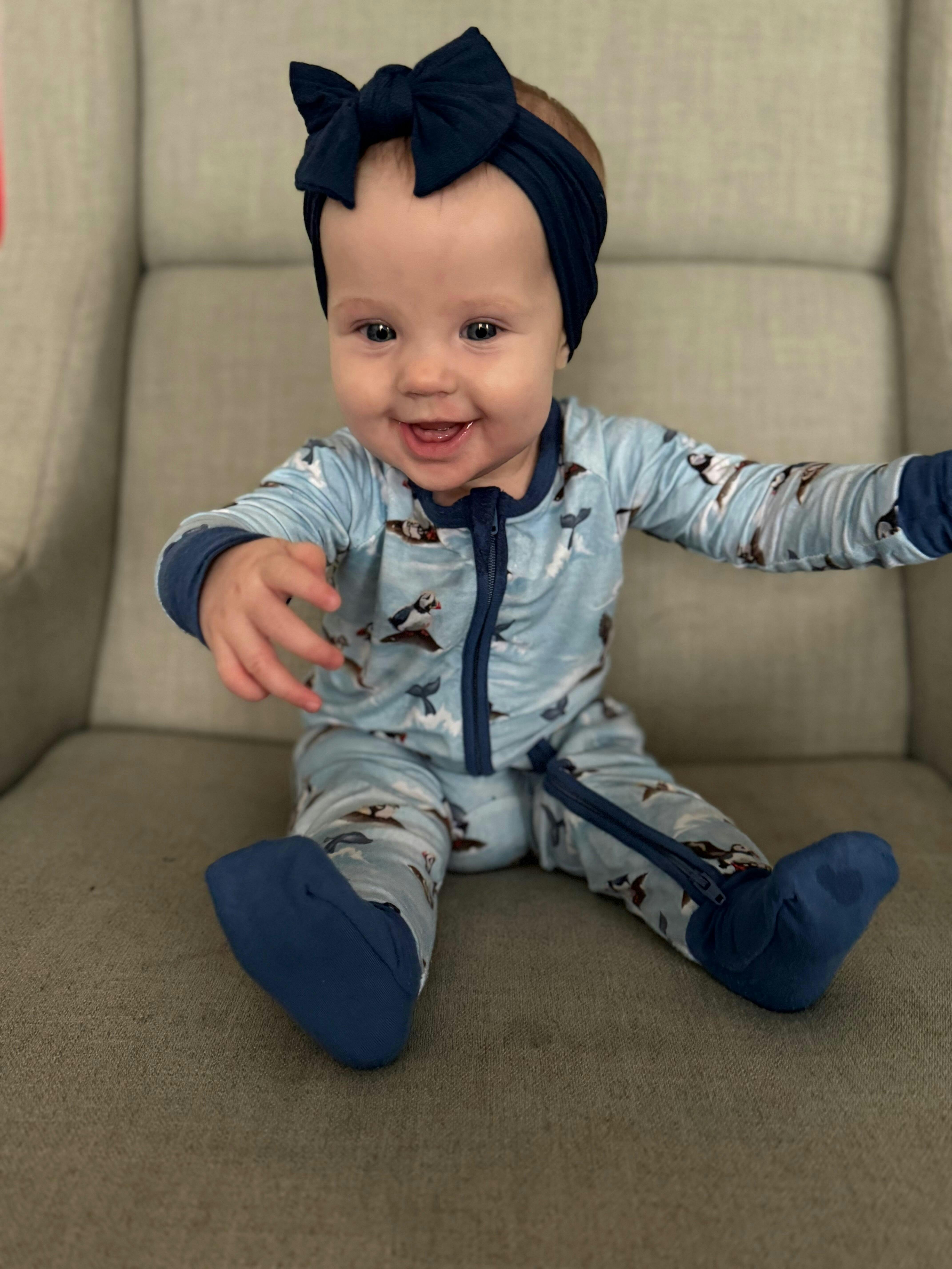 Please note that size variations do exist between batches. This run fits a little smaller than our usual footies. Most notably in size 6-12 (about half a size smaller).